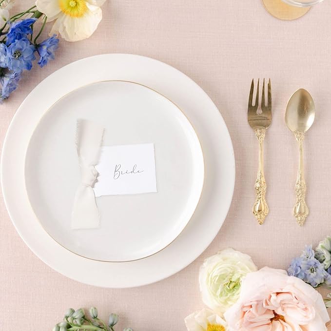 - Beautiful plain cardstock paper gift tags with ribbon and deckled edges that go beyond the basic for truly special occasions, table decor, place cards, favor tags and gifts. Based on traditional paper-making techniques, the laid paper texture and deckled edge mimics handmade paper for a more affordable price. Your personalized name tags are a keepsake item that are so pretty guests will tuck the name cards into purses and hang the placecards on their bedroom mirrors for years to come.