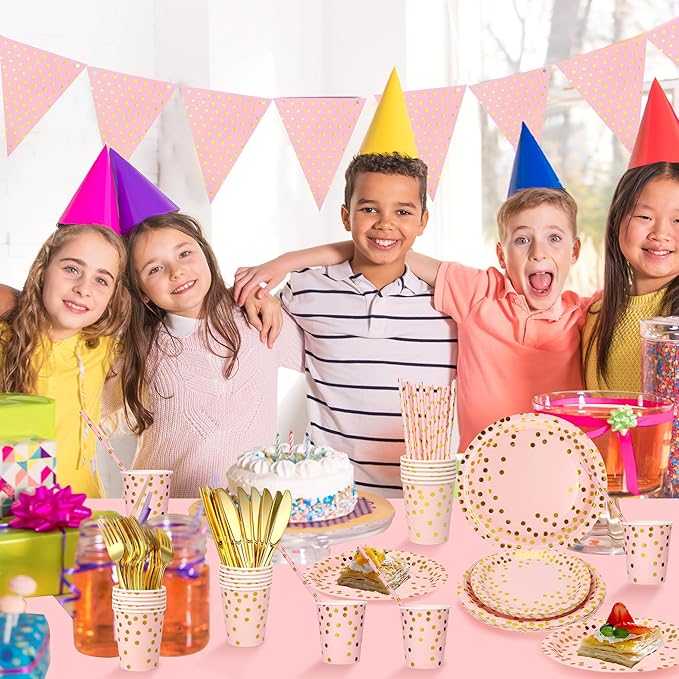 - 【Gold foil dot design】With an elegant pink color background and eye-catching gold foil dot pattern design, our party supplies add a classy and modern touch to any occasion. Perfect for gold-themed parties and events.
