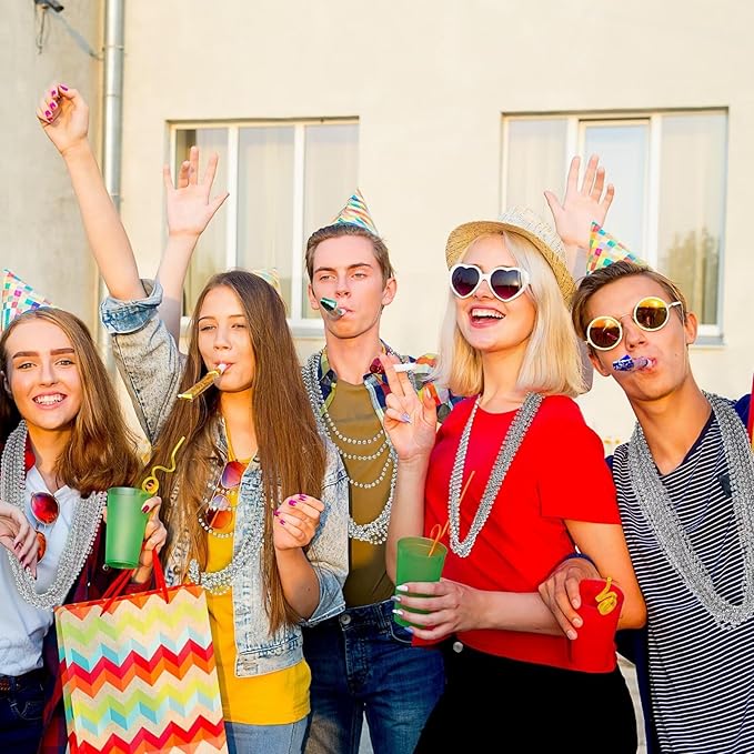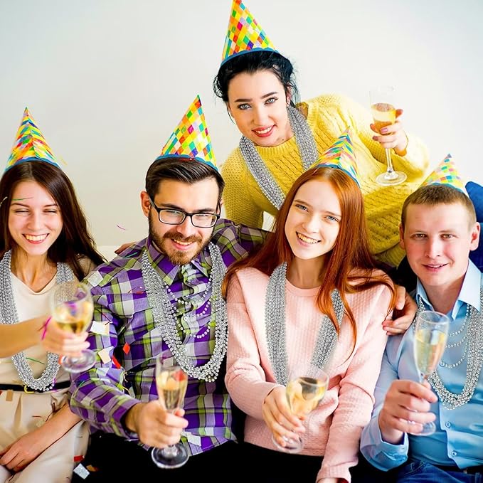 12PCS Bead Necklace, Silver Christmas Bead Necklace Party Favors Bulk, 33" Xmas Necklaces Costumes, Festival Events Parade Throw Accessory Sets for Xmas Mardi Gras Wedding Birthday Celebrations Decor