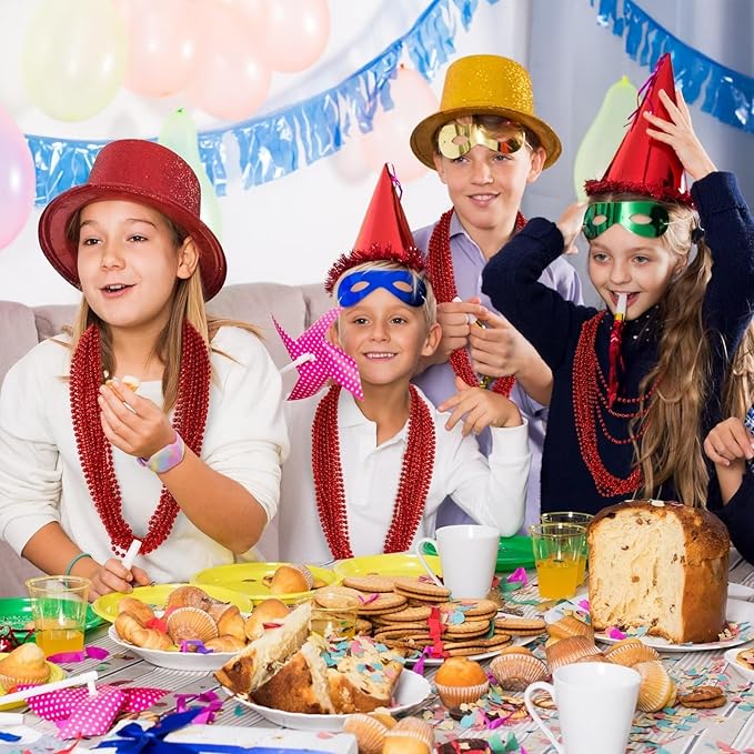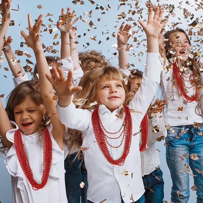 12PCS Bead Necklace, Red Christmas Beads Costumes Party Favors, 33" Beaded Necklace Festival Parade Throw Accessory Sets for Valentines Mardi Gras Christmas Celebrations Decorations