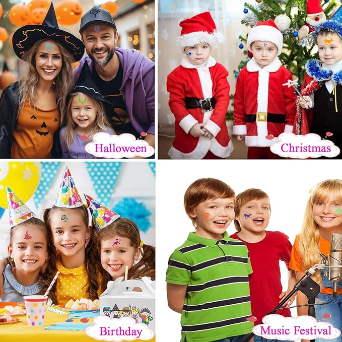 - Perfect Gift for Kids: Our glitter tattoo is perfect for adding some glitz and glamour to your artwork, scrapbooks, homemade cards posters, school projects and more. It provides hours of fun and entertainment for kids, keeping them away from electronic screens and protecting their eyesight. It is also Whether it's a birthday, Christmas, carnival, Easter, Thanksgiving, Children's Day, or any other occasion, this lovely box is a great gift for boys and girls of all ages.