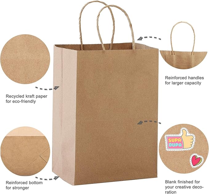 - Durable Gift Bags - These sturdy large paper bags are equipped with well-structured paper twist handles, which can well support 4 pounds of weight .It is durable, recyclable, biodegradable and safe to use.