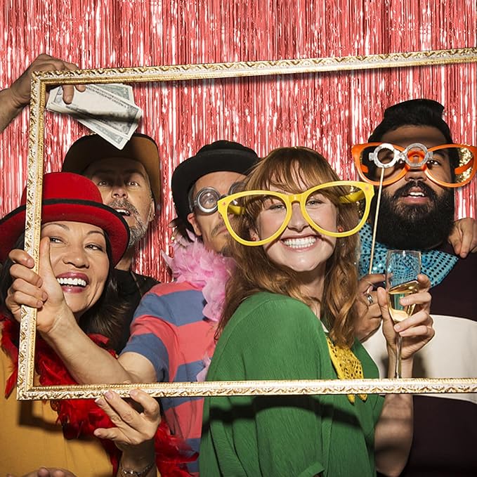 - Party Streamers Backdrop: 10Packs/Set, each pack curtains size is 3.28 ft x 6.56 ft, enough length foil fringe backdrops are perfect for the door or wall to create an impressive decoration for parties, events, and photo booths. Create your own party decorations now!