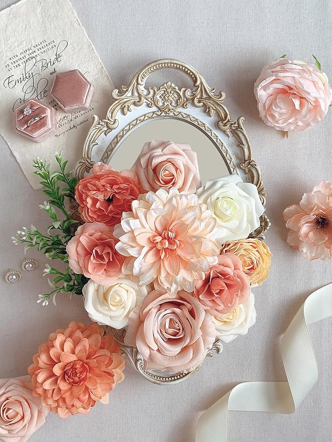 - Occasion: The orange peach roses artificial flowers bulk fit perfectly in wedding, party, birthday, bridal or baby shower, home decor indoor, church, Valentine's Day, Easter, Anniversary, Mother's Day, Halloween, Thanksgiving, Christmas, New Year