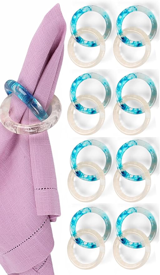 - ✅ Perfect sized : Complete set of 8 blue opaque epoxy resin napkin rings each measures 3.25 x 3.25 x 1 inches