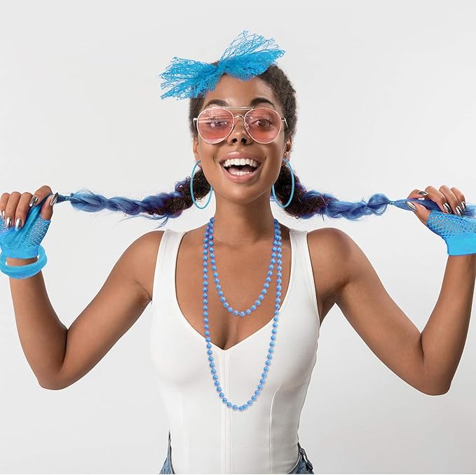 - Package Includes: 80s party supply includes 1 pair fishnet gloves, 1 pair vintage earrings and 1 piece headband, 1 piece necklace and 10 pieces silicone bracelets; Meet you demands for 80's costume accessories and Halloween