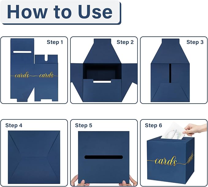 - 【High Quality Material】Our navy blue card boxes are made of high quality cardboard that is both sturdy and durable. In addition, the unique foldable design is easy to assemble and use