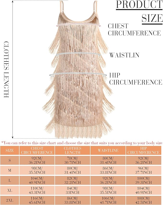 - Fringed Flapper Dress: the 20s flapper dress for women is made of polyester with long tassels decor, its charming and beautiful in appearance, simple color, easily add a stylish and retro flavor; We provide various size options for the dress, please choose according to your need