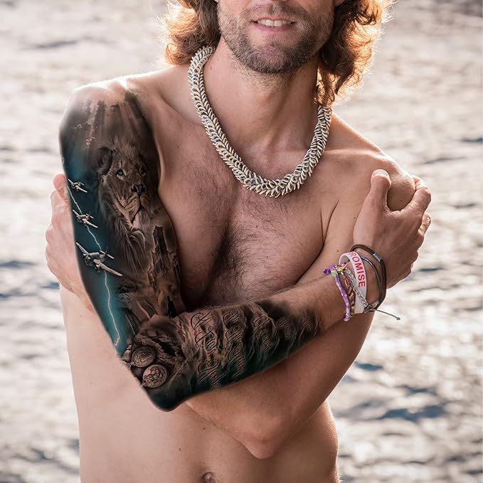 - ✔[SHOW PERSONALITY ANYWHERE] You Can Choose Realistic Sleeve Temporary Tattoos Military You Like, Stick The Temporales Tatoos Kit To Your Body Art Skin. And Show Your Unique Personality On Birthday Party, Halloween Costume, Anime, Swimming Club, Masquerade, Beach, Gym, St. Patrick's Day, 4th Of July, Music Festival, Wedding, Festivals, Vacations, Children's Day, Christmas, Xmas Gifts.