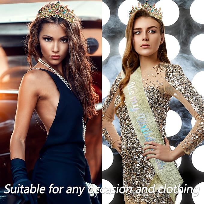 - Size:crowns approximately 1.5 inches in height, 5 inches in diameter; birthday sash:67inch, weight: 0.176 lb, Perfectly suit for any age women and teen girls