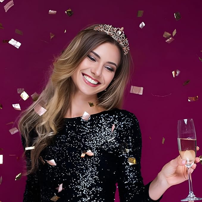 Tiara Crowns for Women, 2Pcs Princess Crown for Girls Crystal Queen Tiaras for Birthday Christmas Costume Bride Wedding Prom-Rose Gold