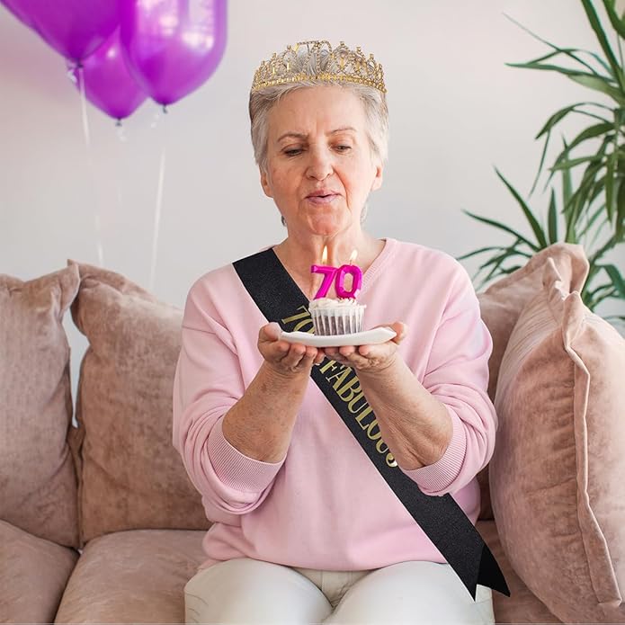 - 【70th Birthday Gifts for Women】70th birthday is a really important birthday,yeah we are old and kids grow up,; it is especially important to choose a suitable gift for this age; the crown and birthday sash, just to meet these, believe us this is an excellent gift choice for the 70-year-old woman; she will be happy to wear this during her big day;