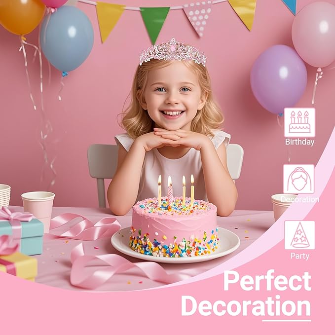 Tiara Crown for Women, Headband Hair Accessories for Birthday Wedding Party Costume Pink