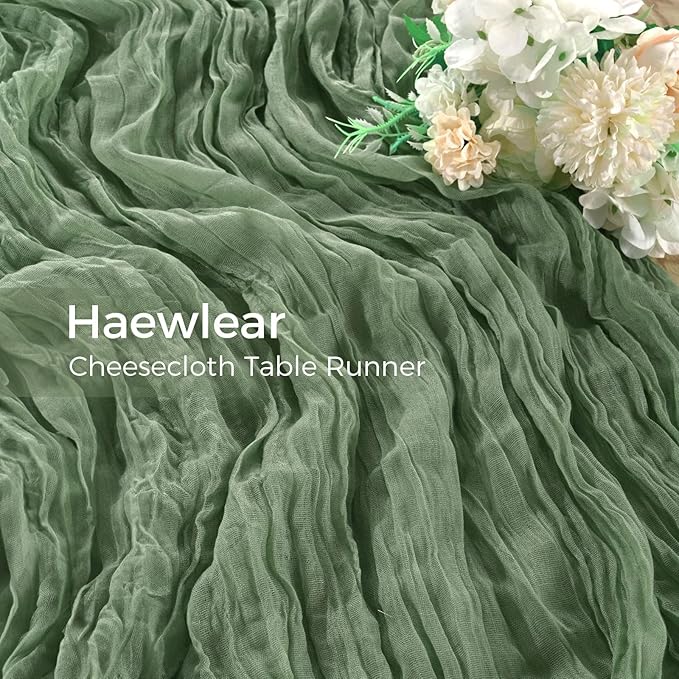 12 Pack Cheesecloth Table Runner 10Ft Boho Gauze Table Runner Cheese Cloth Long Rustic Sheer Table Runner for Wedding Bridal Baby Shower Birthday Party Cake Table Arbor Decorations (Sage Green)