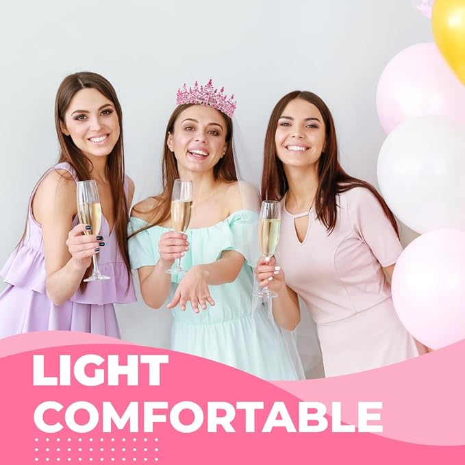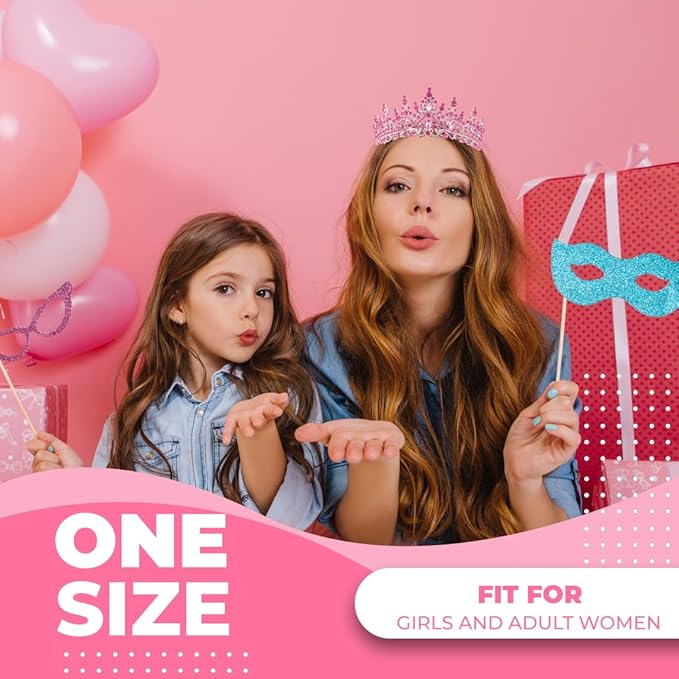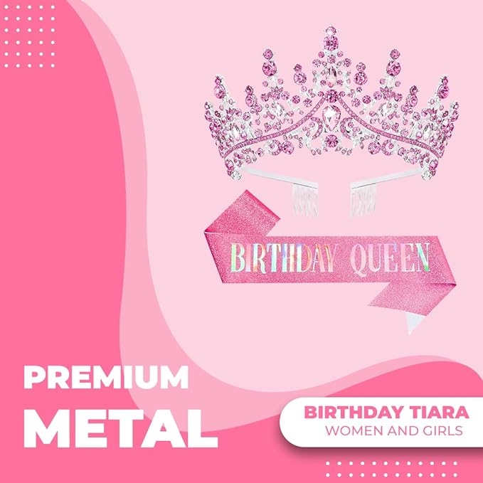 Birthday Tiara Crown with Sash for Women, Headband Hair Accessories for Wedding Party Costume Pink