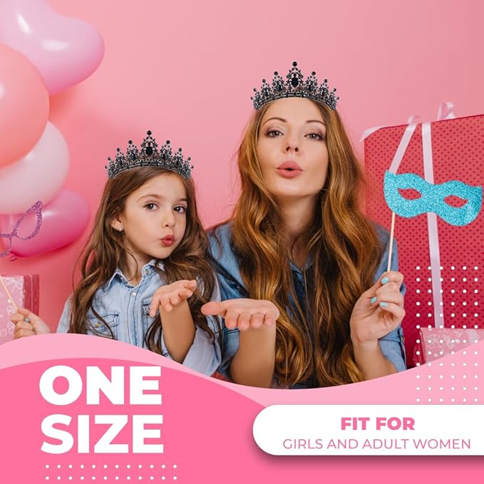 Birthday Tiara Crown with Sash for Women, Headband Hair Accessories for Wedding Party Costume Black