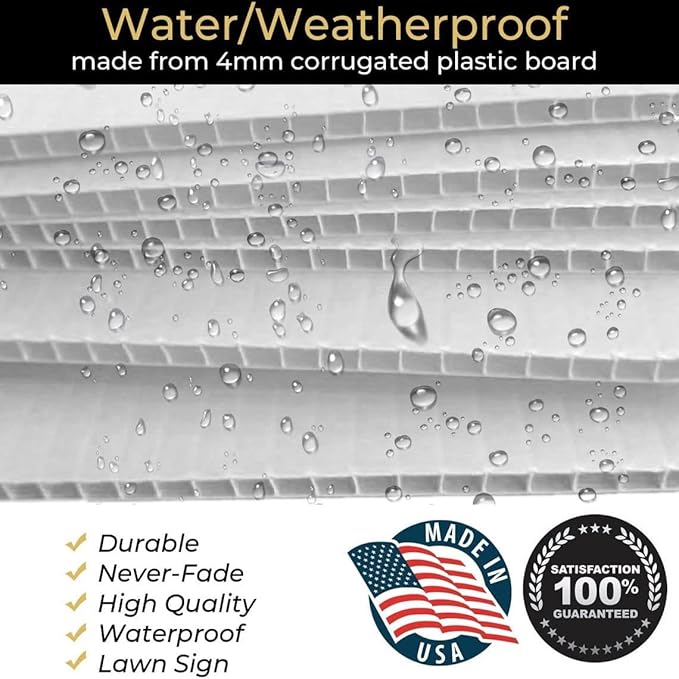 - ππππππππ ππππππ: Yard signs come in various sizes depending on their intended purpose. The most common size is 18β(W) x 24β (L), but you can also find smaller or larger such as 12β(W) x 18β (L), 18β(W) x 27β (L), 24β(W) x 36β (L printed at high resolution with UV ink and is weather resistant to stay strong in all conditions. Our yard signs are printed 1-sided or 2-sided at your disposal with optional stand.