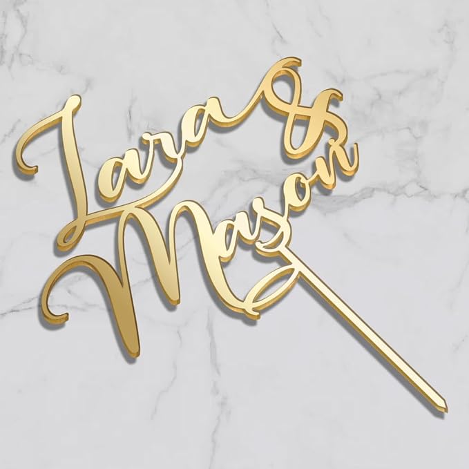 Personalized Wedding Cake Topper in Wood or Acrylic Custom Names of Bride and Groom Cake Topper Cake Decoration (Design 05)