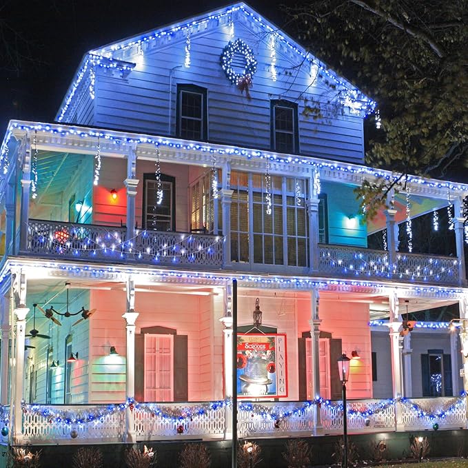 - Connectable LED Christmas Lights: Total length: 23m/76ft, LED string light length: 20m/66ft, lead wire length: 3m/10ft. Blue and white Christmas lights come with male and female safety plug, connect up to 5 sets lights, the connectable led string lights are perfect for decorating large areas.