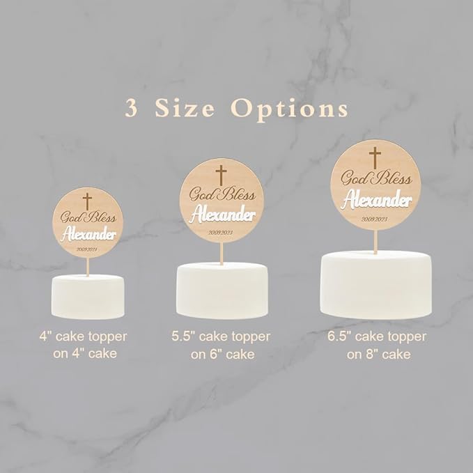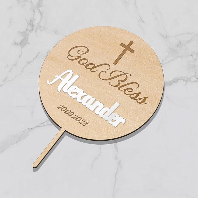 Personalized Baptism Cake Topper 3D Wood & Acrylic Custom Name & Date God Bless Cake Topper Decoration (Design 02)