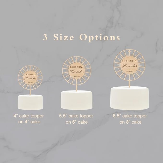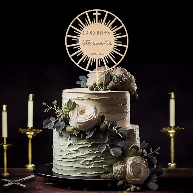 Personalized Baptism Cake Topper in Wood Custom Name & Date God Bless Cake Topper Decoration (Design 01)