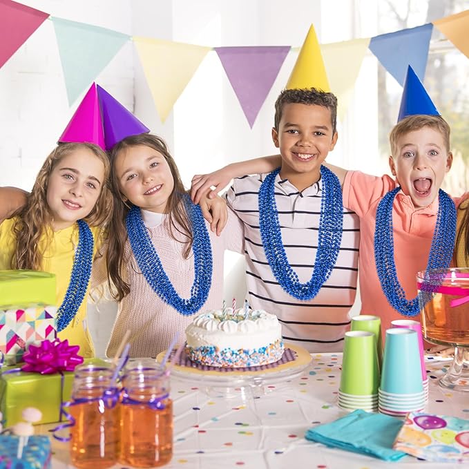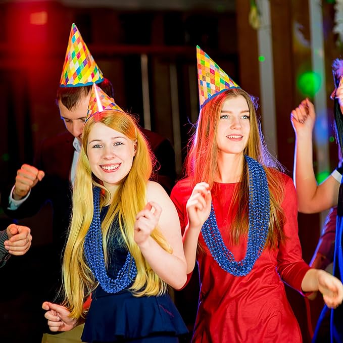 - Blue Beads Necklaces: You will get 100 pcs blue bead necklaces, bulk round beaded necklaces, a sufficient number to meet your home and party decoration needs at various holiday events. Ideal Mardi Gras decorations