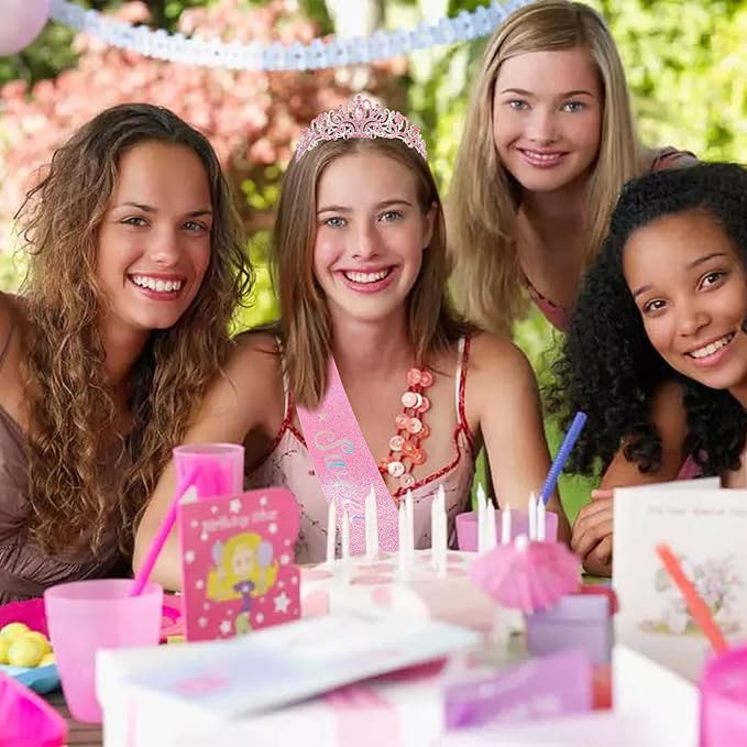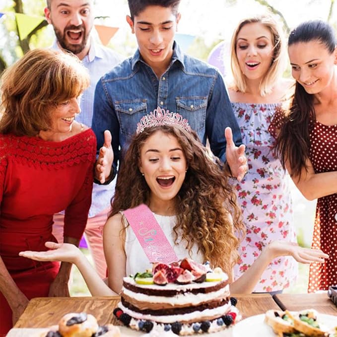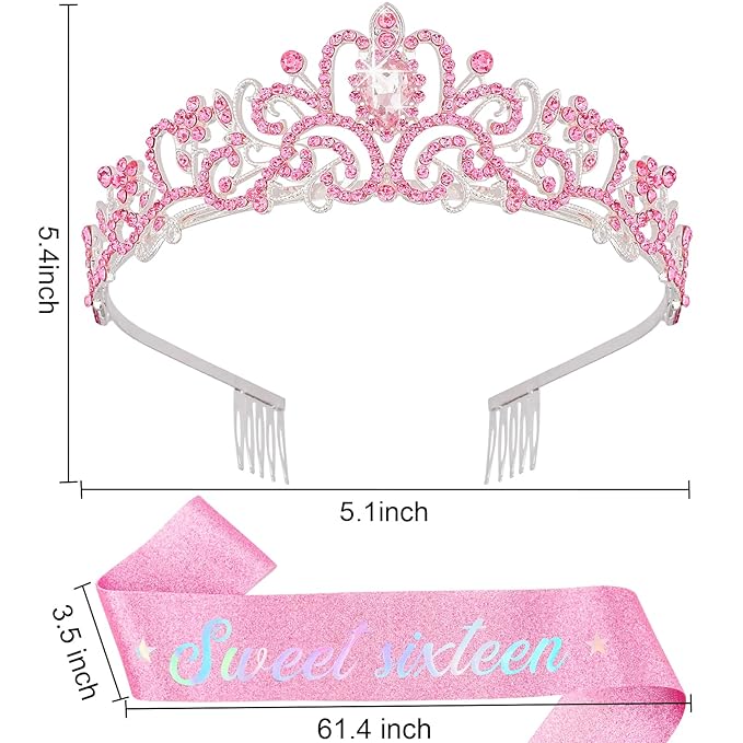 - 【Nice Gift for Sweet 16】If you are still worried about what to give your friends for her birthday, this beautifully crafted crown and a glitter birthday sash will be an ideal choice. The tiara is elegant and atmospheric, with rhinestone embellishments that sparkle in the light. It is a nice hair accessories for girls. When your friend receives this birthday gift, it's sure to reward her with a pleasant surprise. Nice16th birthday gifts for girls.