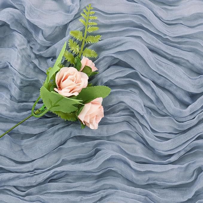 - Elegant Design: The blue cheesecloth table runner is designed with seamless wrinkle and fine workmanship, which is not only soft but also elegant. The Bohemian farmhouse style gauze table runner gives your party a rustic, retro, elegant bohemian vibe and impresses your guests. Lightweight and skin-friendly, the naturally draped, soft table runner has a delicate edge to hang gracefully over your banquet table.