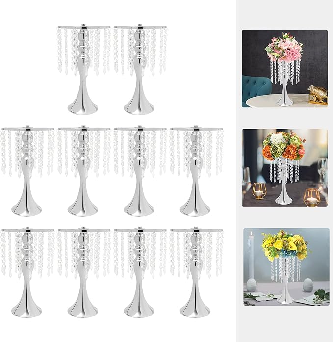 - Package Include:10 pcs crystal centerpieces flower stand for wedding and events. diameter of 5.1 inches. Artificial flowers are not included. Perfect for a housewarming or wedding present.