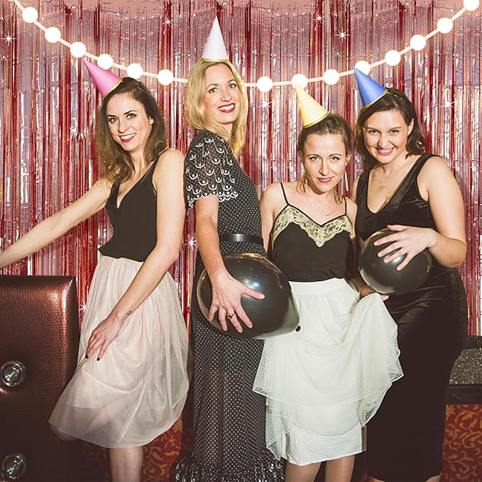 - Party Backdrop Decorations: You can use this glitter gorgeous tinsel foil fringe background to decorate your celebration party. Hang them on a carpeted end or wall as a backdrop,or it could be one entrance to the party. You can paired with an LED light, balloons, banners and various photo props on this backdrop. All the guests who come to bless you will feel your love and beauty and was remembered for having a great party!