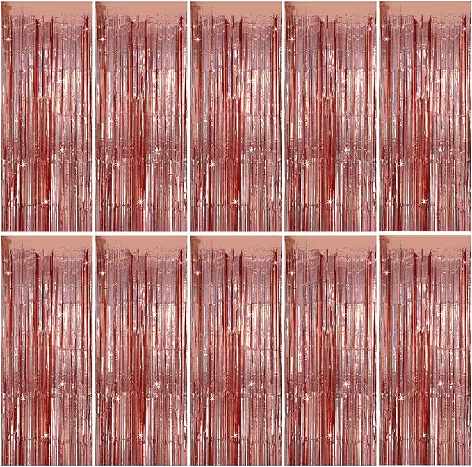 Tinsel Curtain Party Backdrop Rose Gold Birthday Decorations 10 Packs Glitter Foil Fringe Curtain Party Decor Streamers Photo Booth for Birthday Christmas Wedding Halloween Graduation Decoration