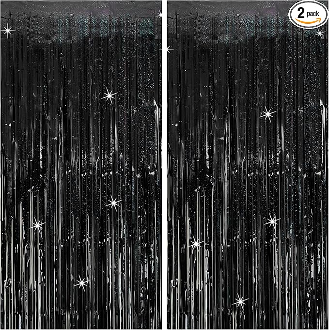 - Tinsel Curtain Party Backdrop: 2Packs/Set, each pack curtains size is 3.28 ft x 6.56 ft, enough length for decorate your party. Perfect accessories for decorating doors and walls to create an impressive decoration for parties, events, and photo booths.