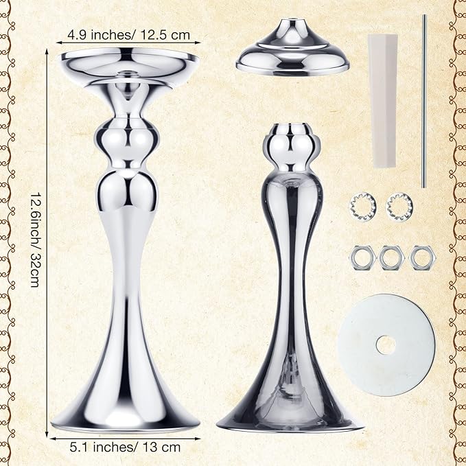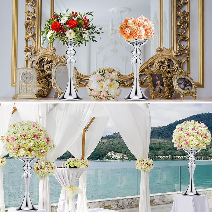 - Package Content: you will receive 16 pieces silver metal flower arrangements stand, the height is about 12.6 inches/ 32 cm, top diameter is about 4.9 inches/ 12.5 cm; Bottom diameter is about 5.1 inches/ 13 cm; Enough quantity for your use, it is your ideal wedding table centerpieces