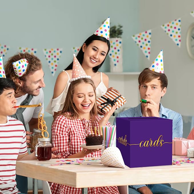 - 【Exquisite Design】The purple card box is printed with elegant gold foil "card" characters, so that your friends can see its function at a glance. The party card box is suitable for any scenario. The exquisite design can also be the icing on the cake for your party. Let the purple box add more splendor to your graduation or birthday party and more!