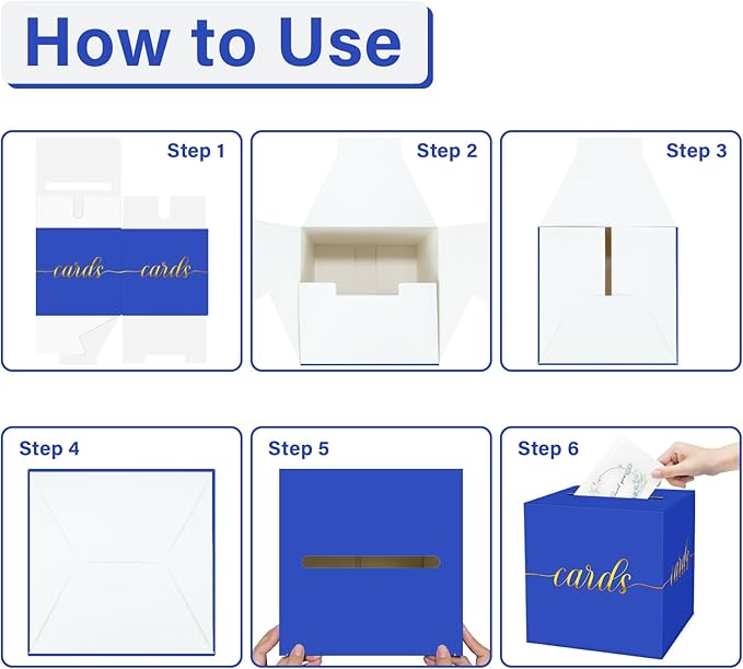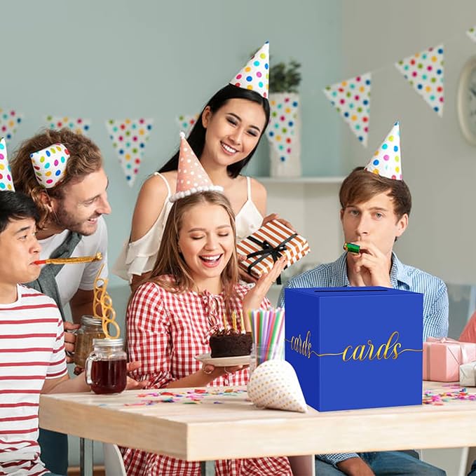 - 【Exquisite Design】The blue card box is printed with elegant gold foil "card" characters, so that your friends can see its function at a glance. The party card box is suitable for any scenario. The exquisite design can also be the icing on the cake for your party. Let the blue box add more splendor to your graduation or birthday party and more!