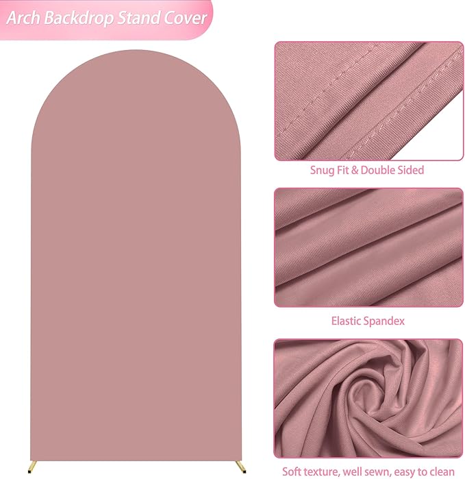 - 【Arch Stand and Covers Package】Package contains 1pcs wedding arch stand and 1pcs arch cover. Size: 6.6x3.3ft(HxW). Material: metal arch backdrop stand and spandex arch cover. Color: Light dusty rose arch cover and gold wedding arch stand. Decorate your party with our gold arch stand and arch covers to create an epic decor for your celebration.