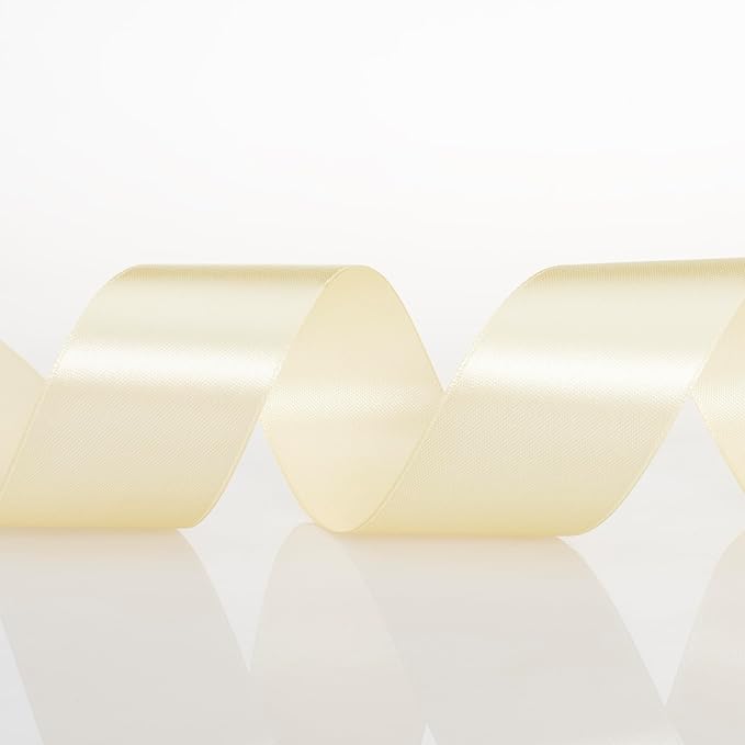 1 1/2 Inch Cream Yellow Solid Satin Ribbon, 50 Yards Craft Fabric Ribbon for Gift Wrapping Floral Bouquets Wedding Party Decoration