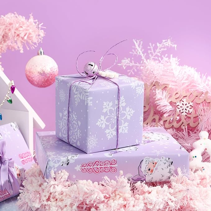 - Reversible Design: Purple santa claus with embossed printed on one side, purple and white snowflake printed on the reverse. Two different designs make unique and varied gift presentations easy.