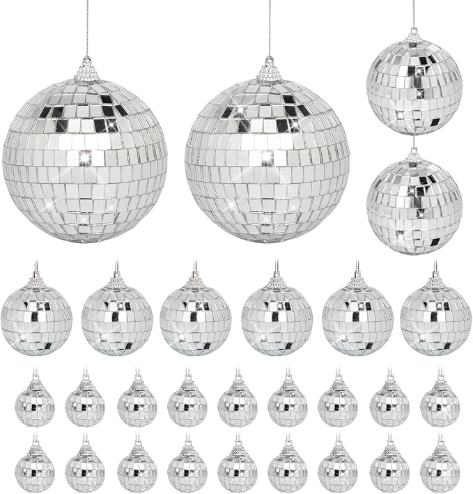 - 28 pack mini disco balls decoration: 4 sizes of disco ball decor including 2 x 2.4 inch, 2 x 2 inch, 6 x 1.6 inch, 18 x 1.2 inch, various sizes of disco ball ornaments can be freely matched to meet your daily and party needs
