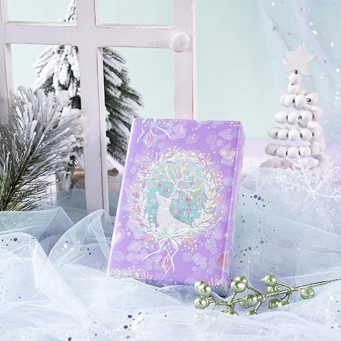 - Reversible Design: Purple reindeer with Christmas garland printed on one side, solid purple printed on the reverse. Two different designs make unique and varied gift presentations easy.