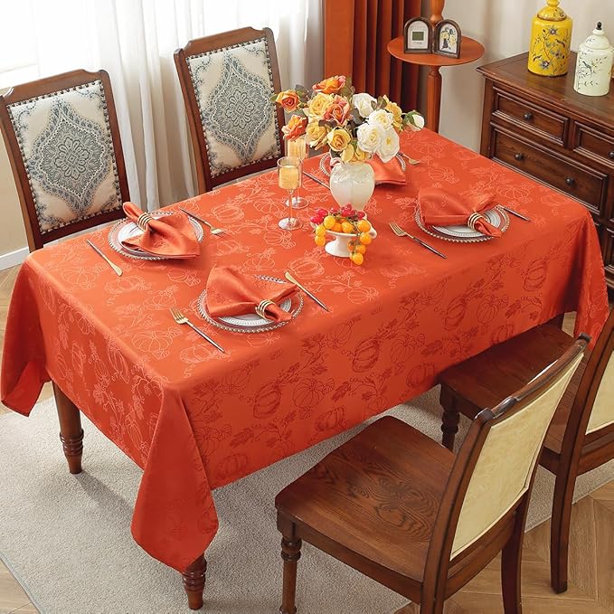- VERSATILE USE: Ideal for both indoor and outdoor settings, this fall jacquard tablecloth can effortlessly enhance the look of your dining room, kitchen, or patio. Whether you're hosting a cozy family dinner or a festive Thanksgiving party, this tablecloth sets the perfect seasonal tone.