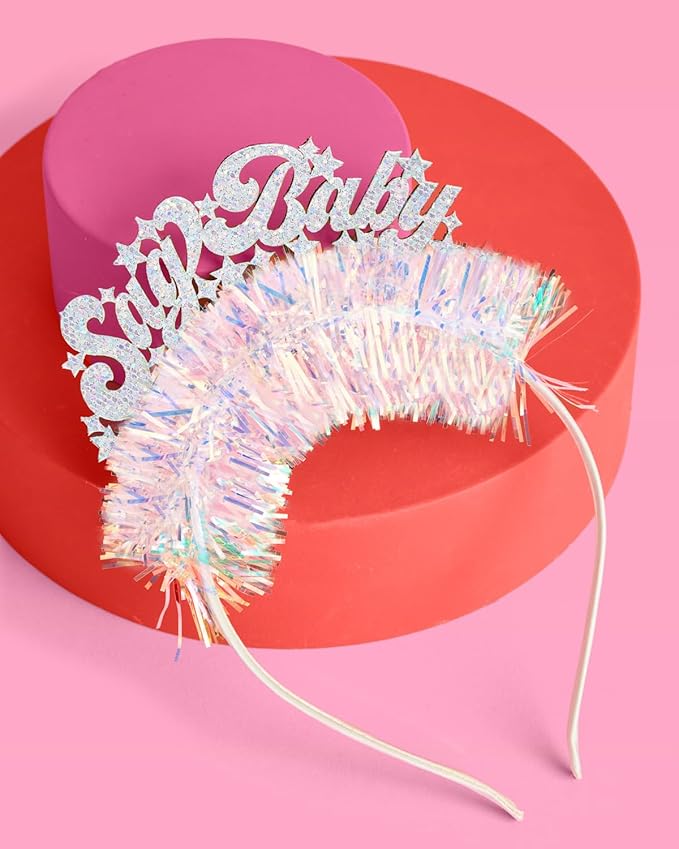 - Foil Details: Each headband features a "Sag Baby" logo made out of the prettiest glitter fabric + iridescent fringe.
