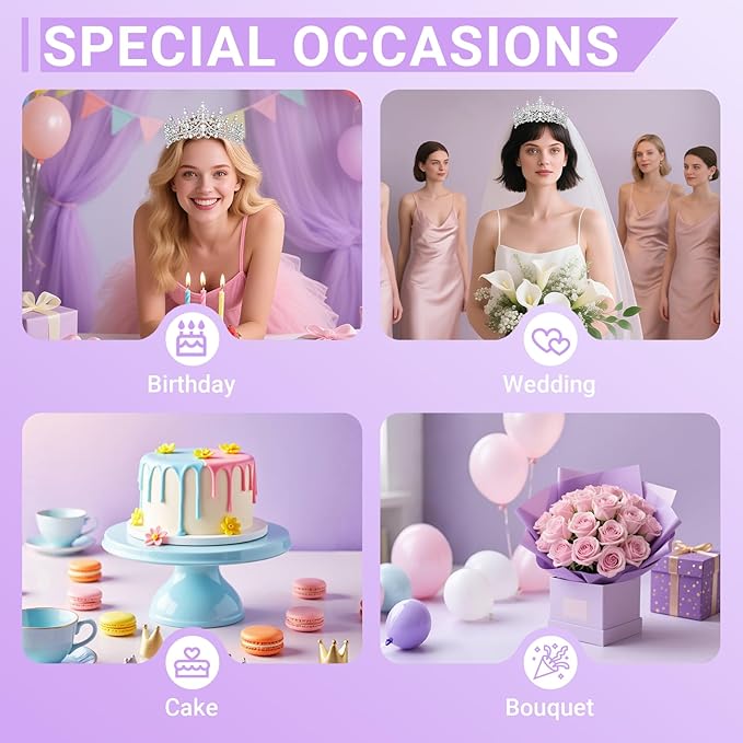 • Perfect for All Ages and Occasions: Whether you're celebrating a women in between, this tiara is the ideal accessory. It's perfect for birthday parties, photoshoots, or even a night out with friends.