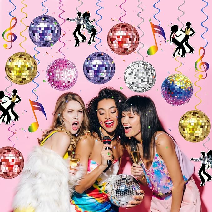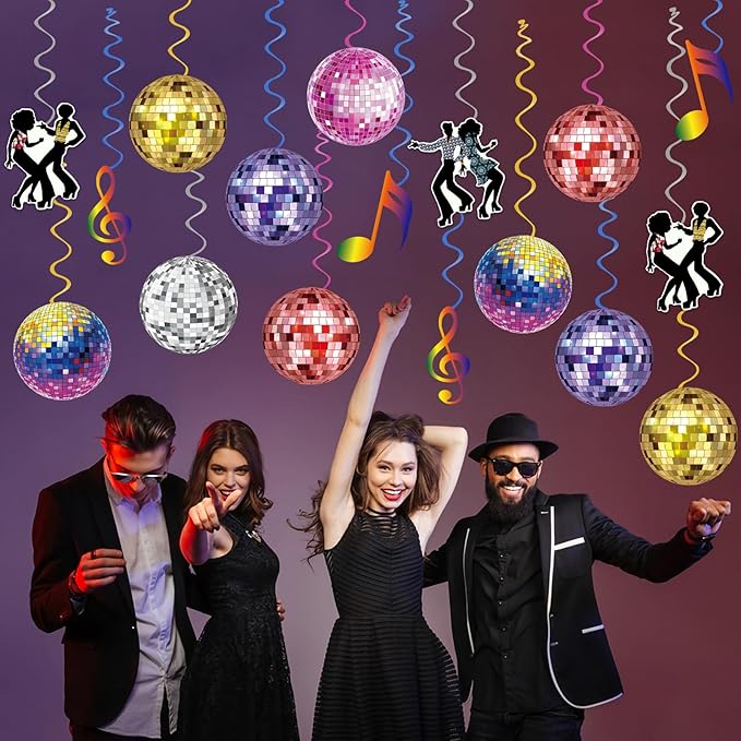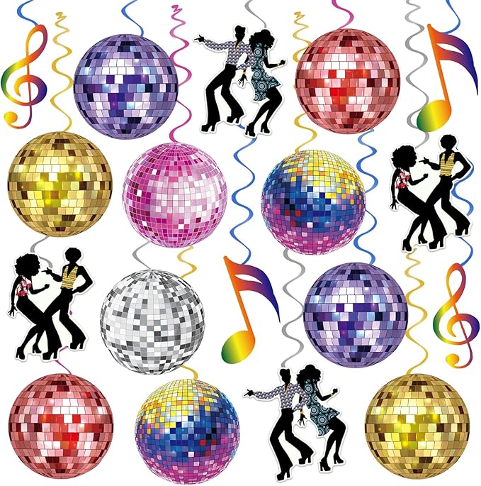 - Disco Themed Design: Disco hanging swirls are printed with vibrant disco elements patterns such as disco balls, dancers, and musical notes with sparkling and colorful swirls to instantly liven up your party and add a cheerful atmosphere.