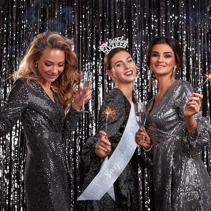 VELSCRUN 50th Birthday Queen Headband, Tiara Crown for Women, 50th Birthday Decorations for Her, Birth Queen Tiaras Crowns Sash for Women Mom Birth Party Decoration Hair Accessories Silver