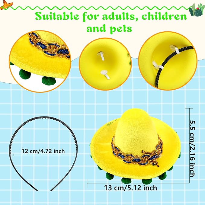 - 【Wide Application】: Mexican sombrero headbands are suitable for a wide range of scenarios, perfect for Cinco De Mayo events, event photo props, Mexican themed holiday parties, Day of the Dead, weddings, birthdays, Christmas and more, adding lots of fun to you