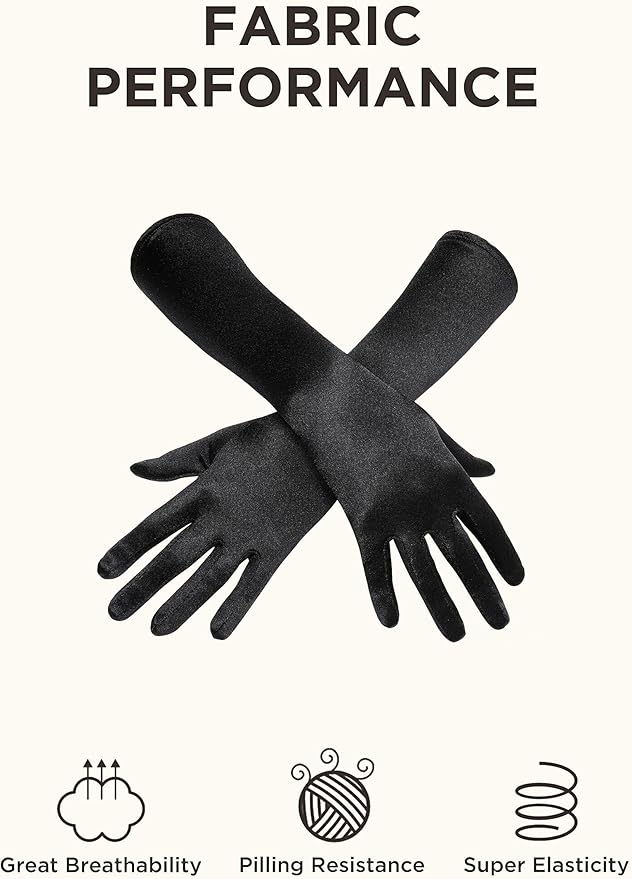 - Size: Free size. Headband is one size with elastic band; Necklace length-55"; Gloves length-15.0"; Plastic holder length-13.0".