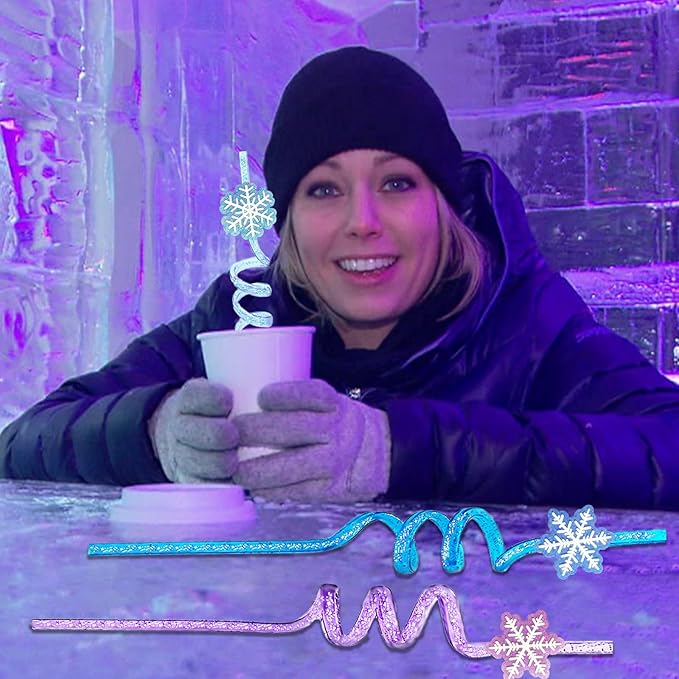 - Reusable Glitter Frozen Plastic Straws Bulk - Original design. You can get 24 reusable frozen drinking straws with 24 snowflake patches. It contains 4 snowflake styles and 4 elegant colors. The straws are suitable in all size and bright in color, very suitable for frozen birthday party activities or daily use. People can sip fabulous drinks from frozen straws at a frozen party. Lively snowflake patterns can make your party more outstanding.