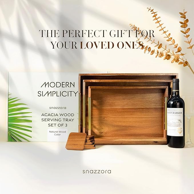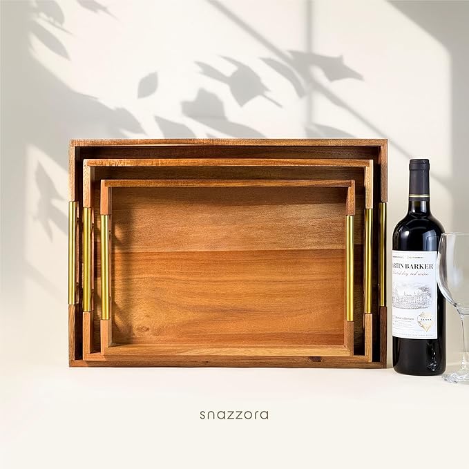 - Premium Acacia Wood Serving Trays Crafted from durable acacia wood with rich, natural grain. A perfect wooden tray set for daily use or farmhouse-style home decor.
