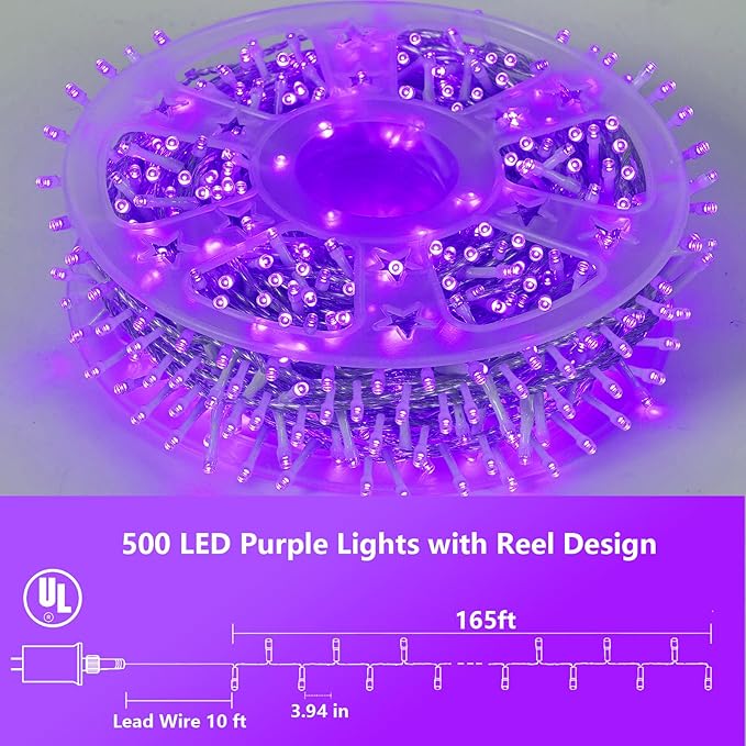 YEGUO 165ft 500 LED Christmas Lights Outdoor Waterproof, Purple String Lights Indoor Plug in, 8 Modes Clear Wire Purple Lights for Halloween Holiday Home Tree Garden Patio Decor
